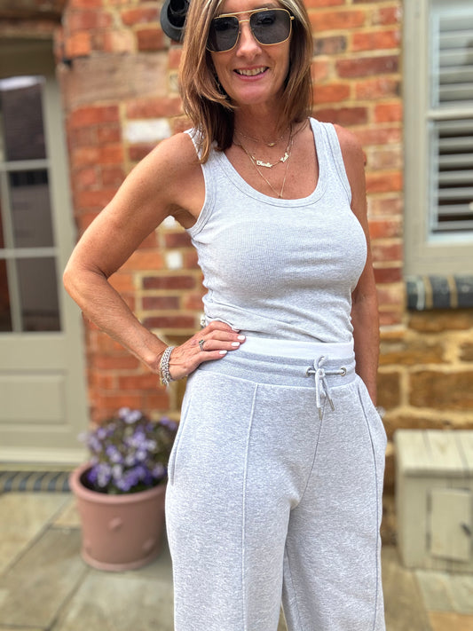Lola Contrast Waistband Wide Leg Grey Joggers