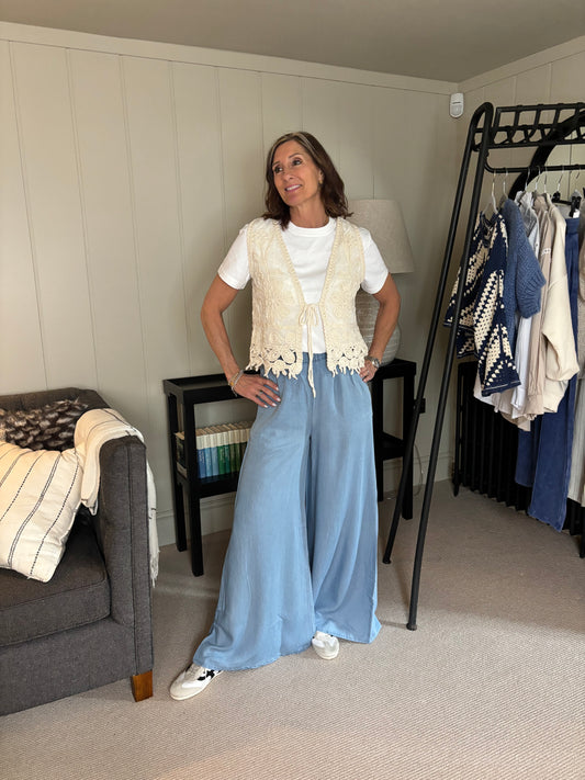 Tessa Wide Leg Pale Blue Lightweight Trousers
