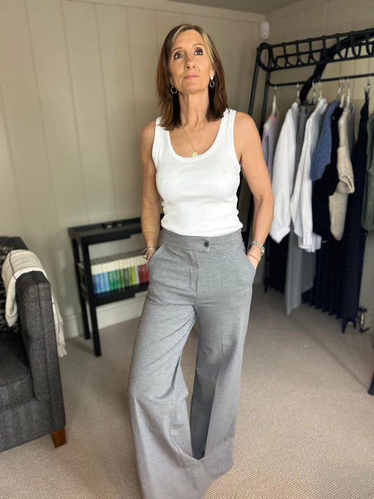 Lola Contrast Waistband Wide Leg Grey Joggers