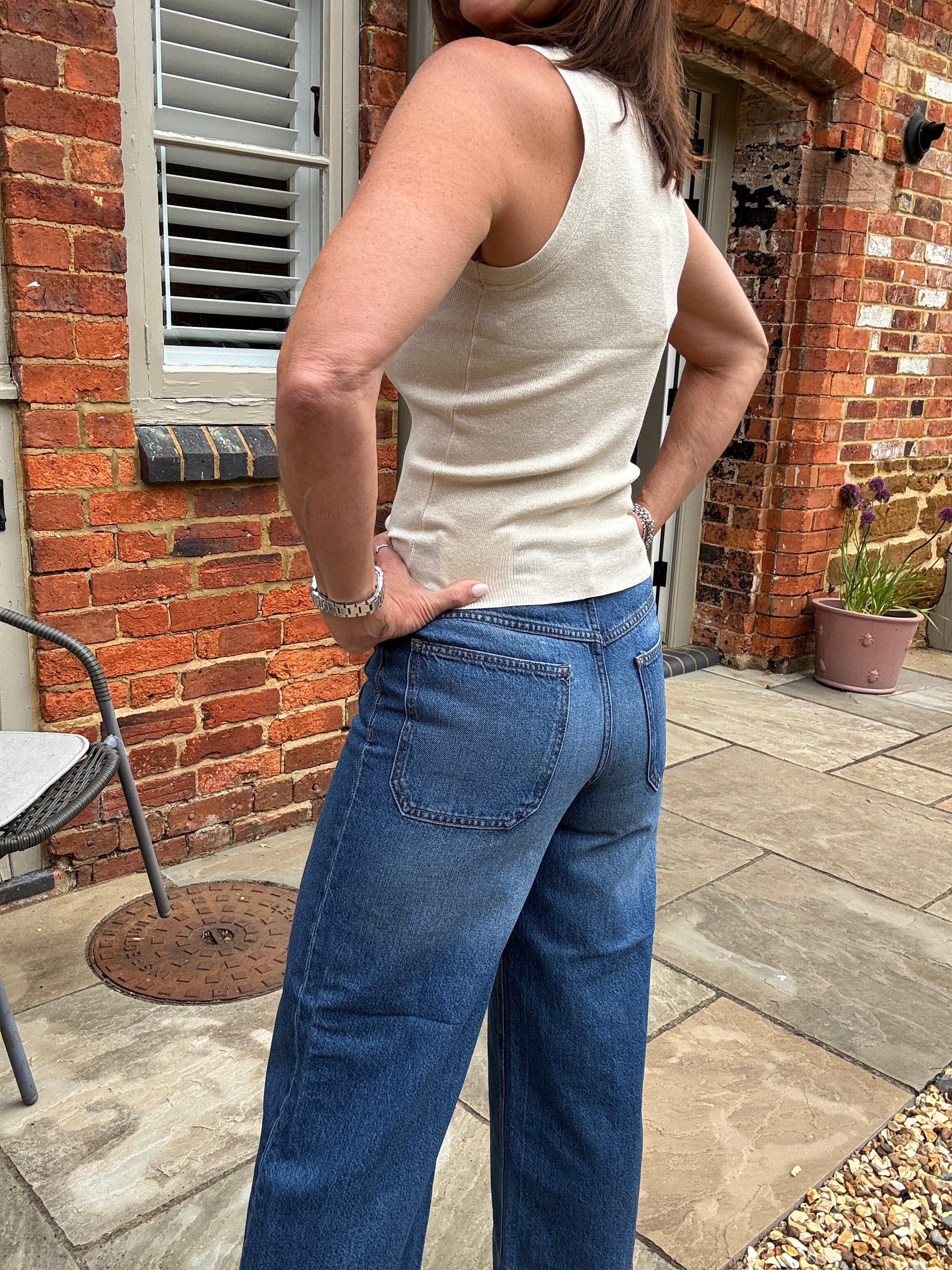 These high rise wide leg cropped 3 way stretch jeans are a staple jean to wear for mixed weather, autumn or spring.