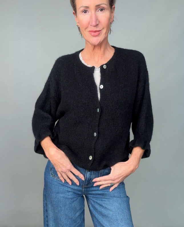 An absolutely essential addition to your autumn wardrobe. A button through cardigan in the softest knit with gorgeous three quarter sleeves and ruffle cuffs. We mean it when we say these cardigans go with just about anything!