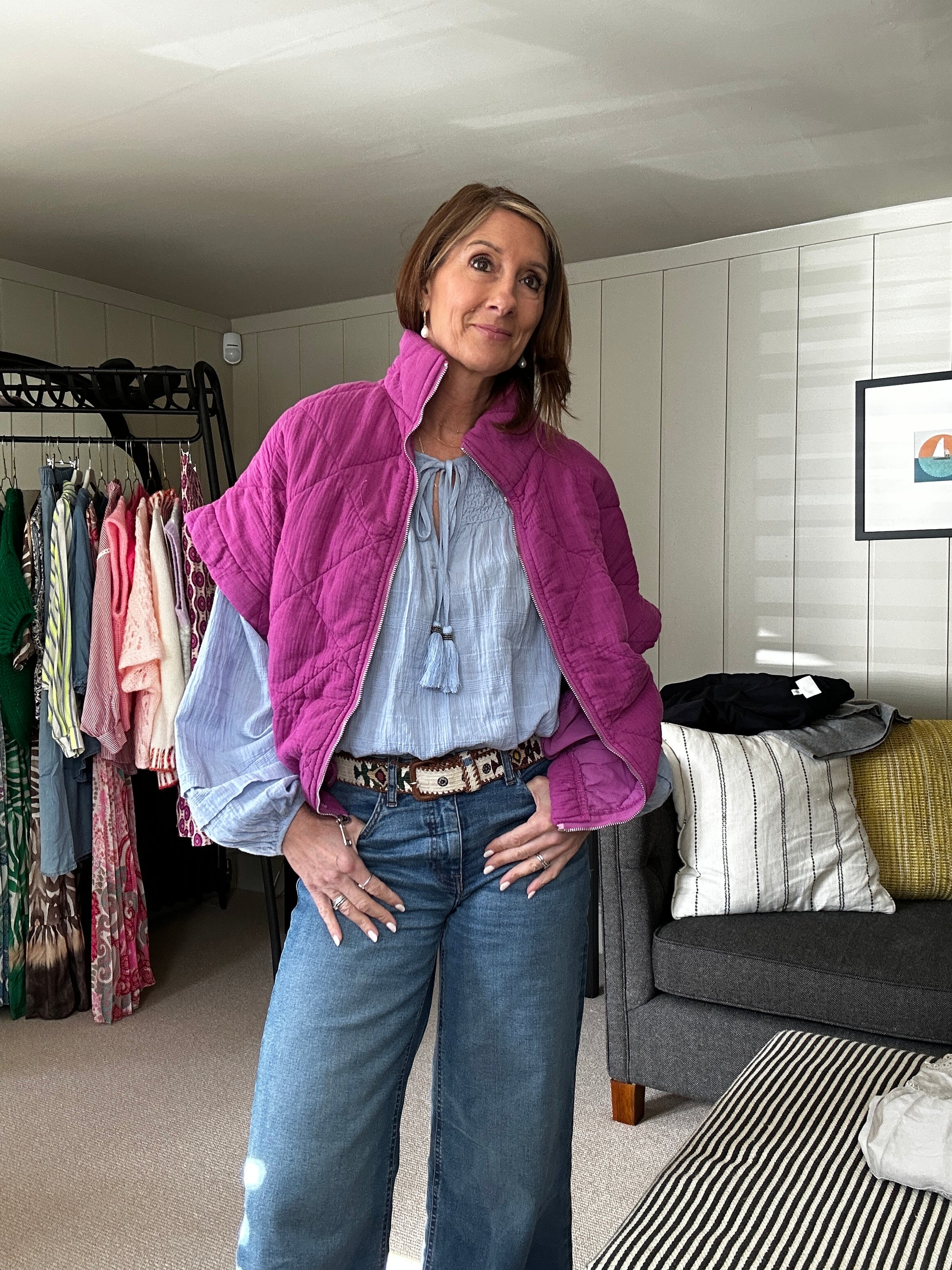 Add a cropped cardigan and white trainers for an effortlessly cute daytime outfit. For a holiday vibe, style it with chunky gold hoops and espadrilles, or heels or high sandals to dress it up for an event.