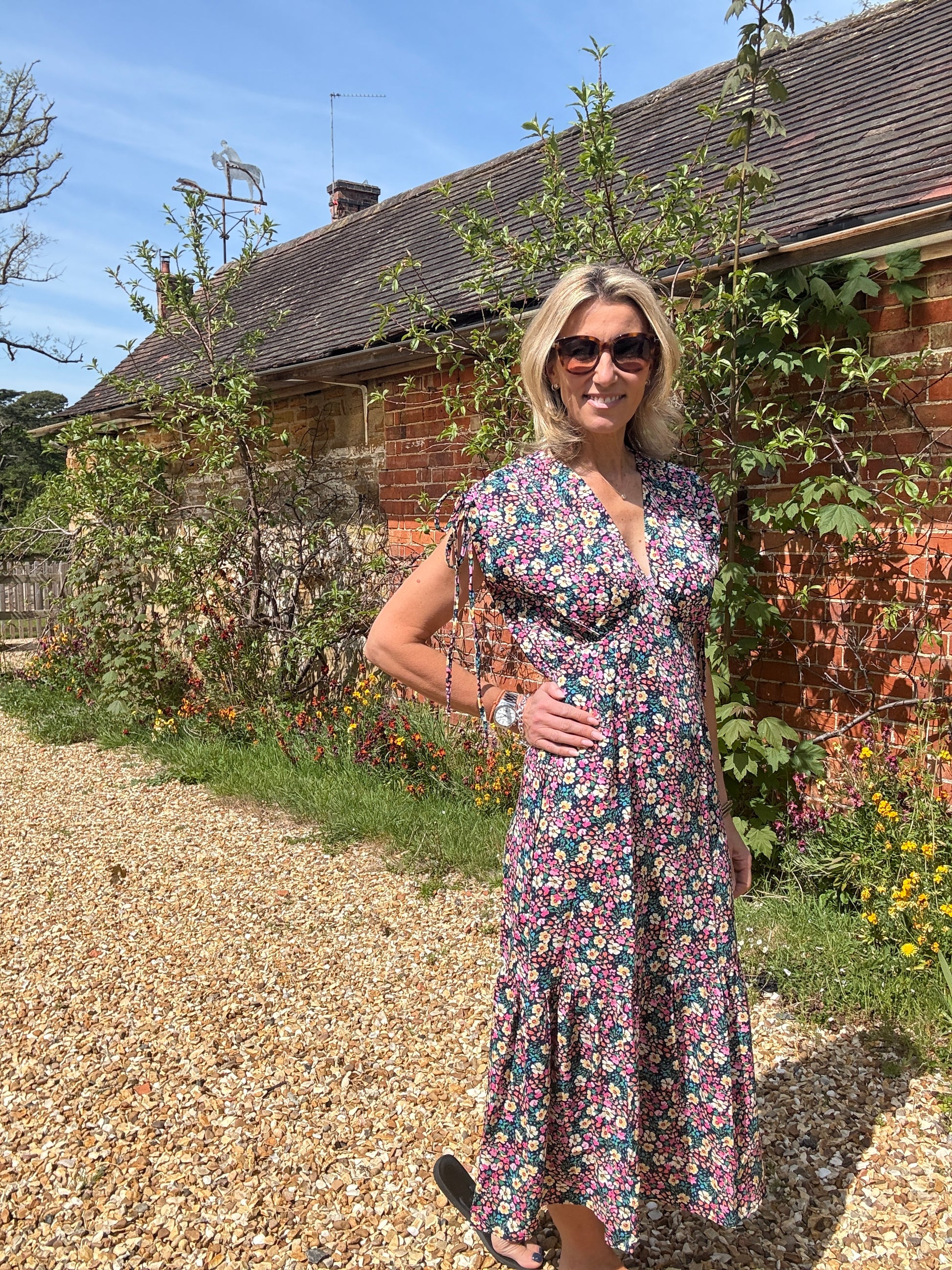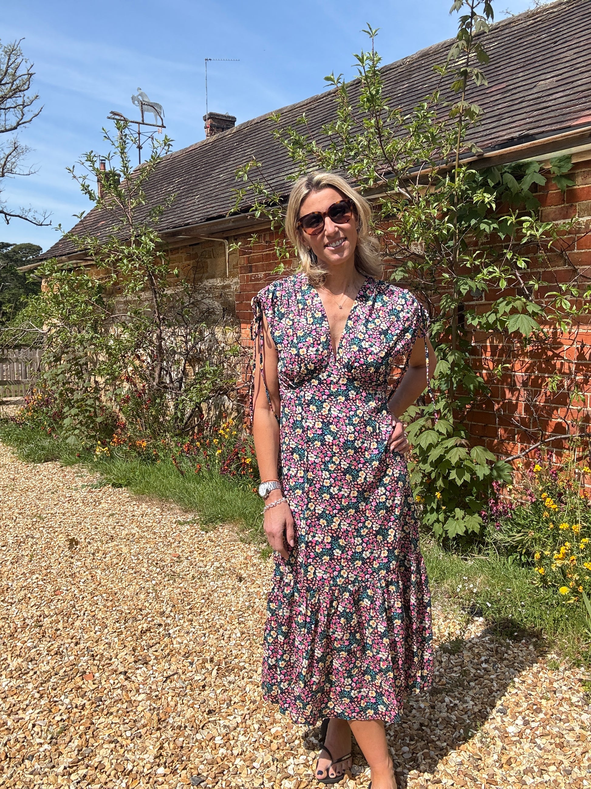 Say hello to your new sunny-day staple — the Multicoloured Floral Gathered Sleeve Midi Dress. Bursting with ditsy florals, this easy-breezy silhouette is made for everything from a lunch date to garden parties or a wedding.