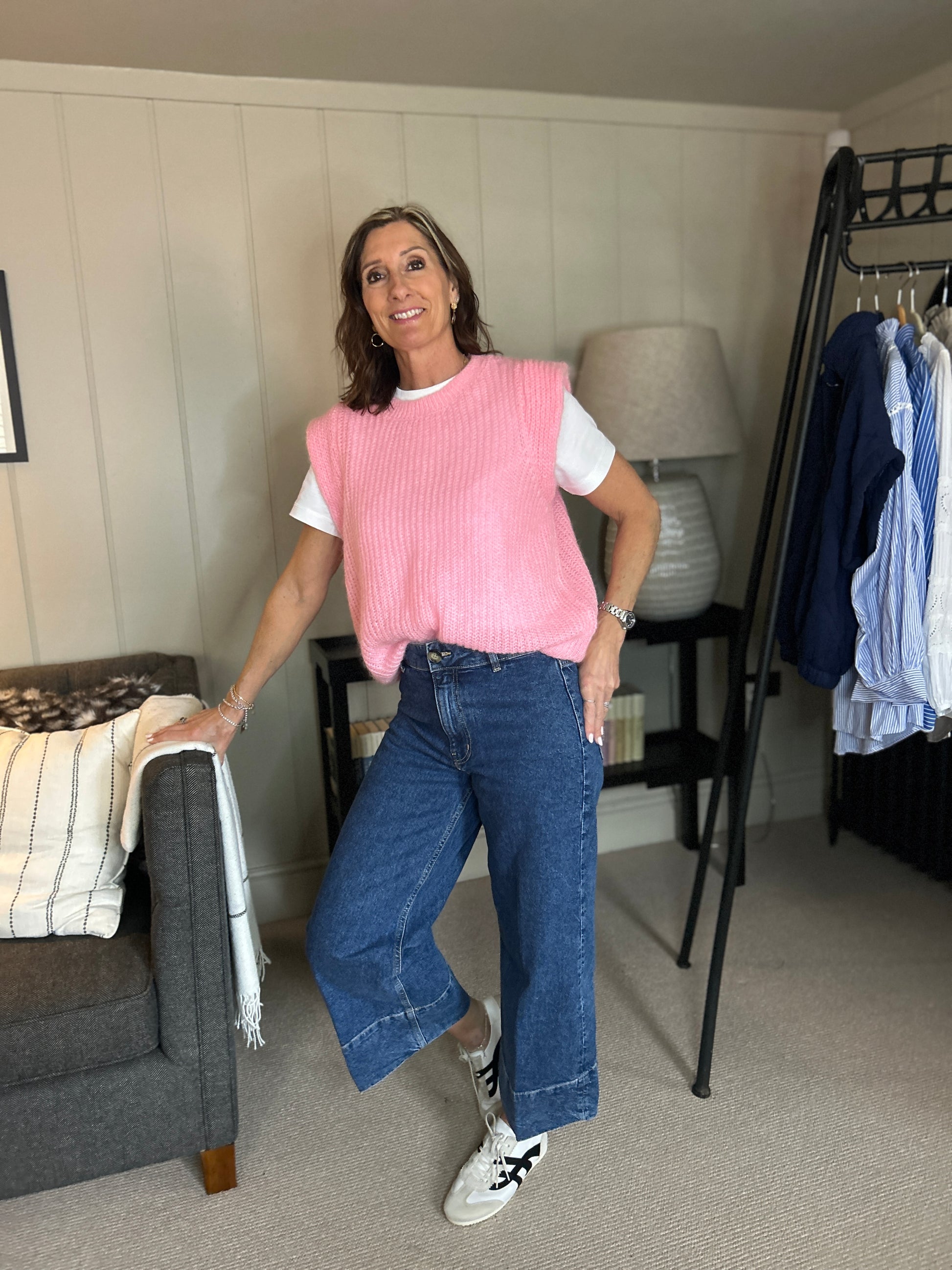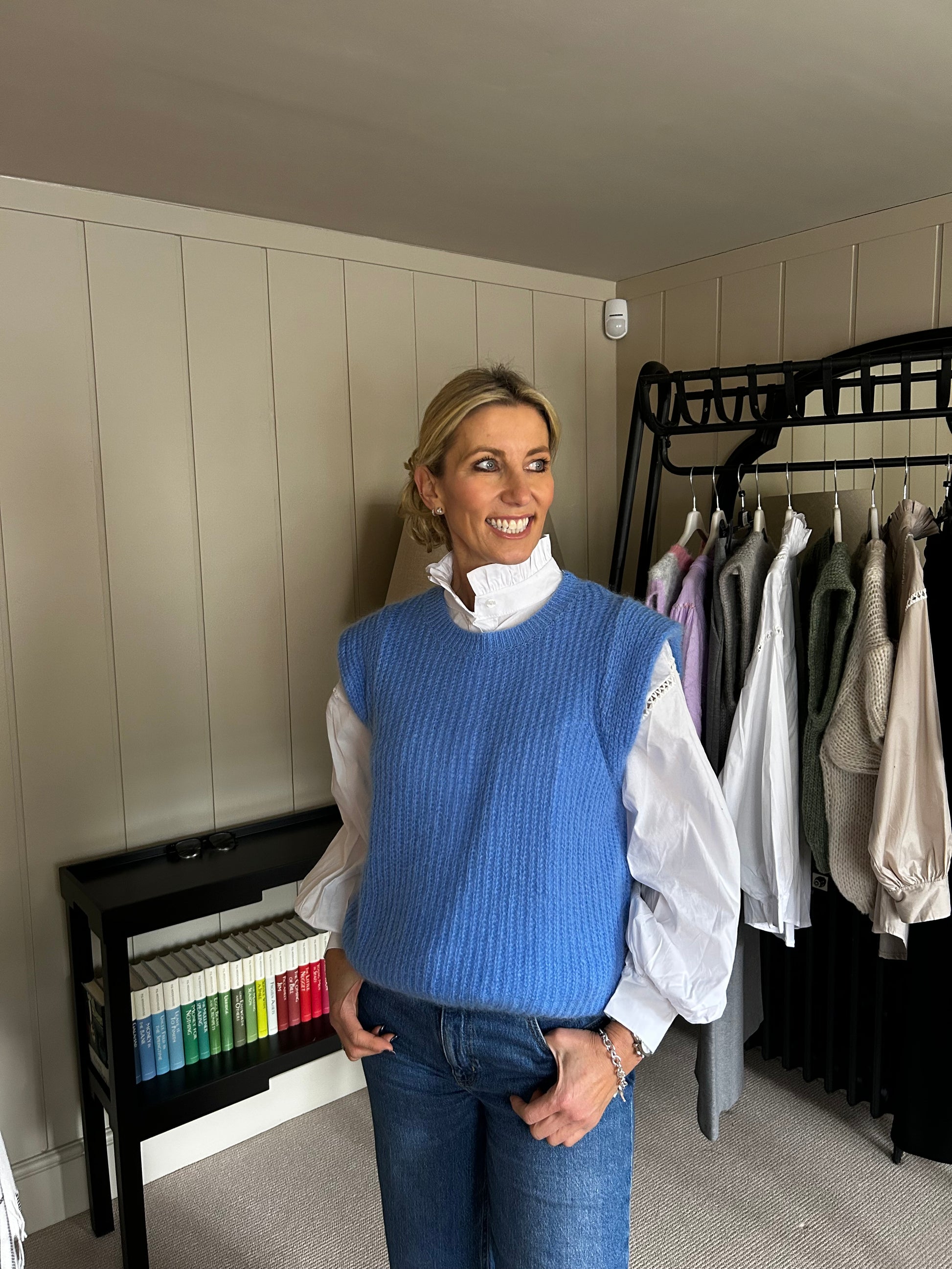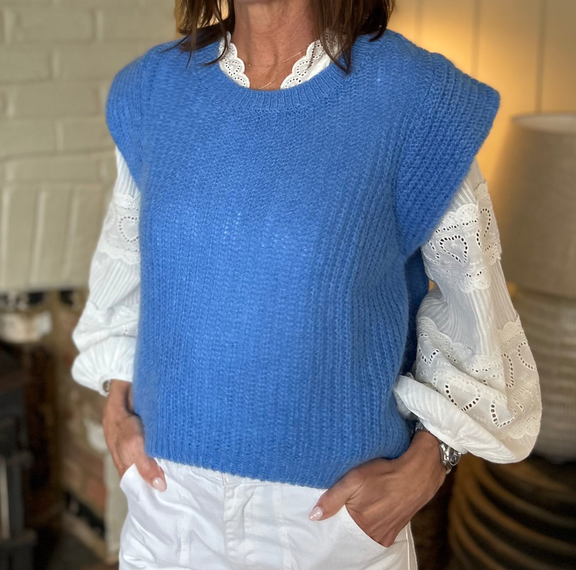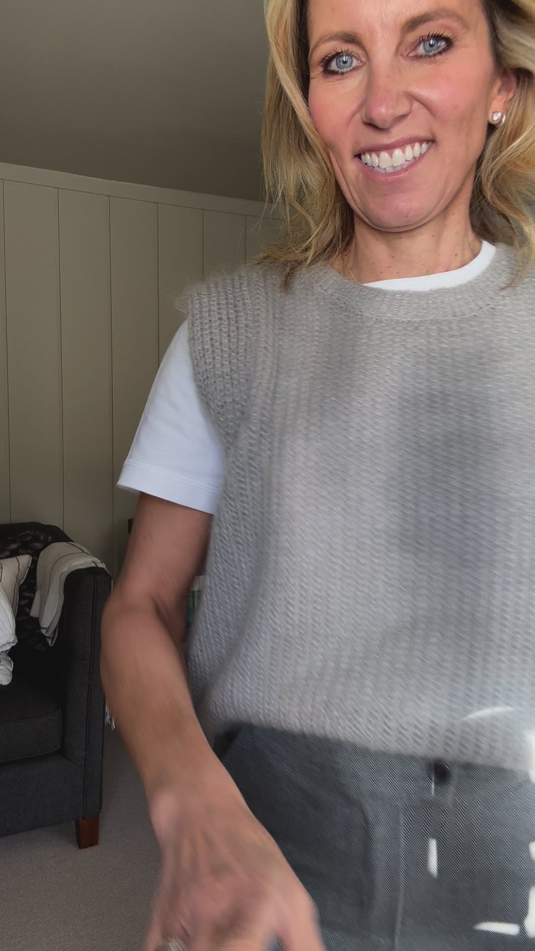 This soft knitted sleeveless tank vest features structured shoulders for a sharp, contemporary silhouette and it’s crafted from a soft, breathable knit that drapes beautifully. Whether worn alone or layered over a shirt, this versatile piece adds effortless style to any outfit.