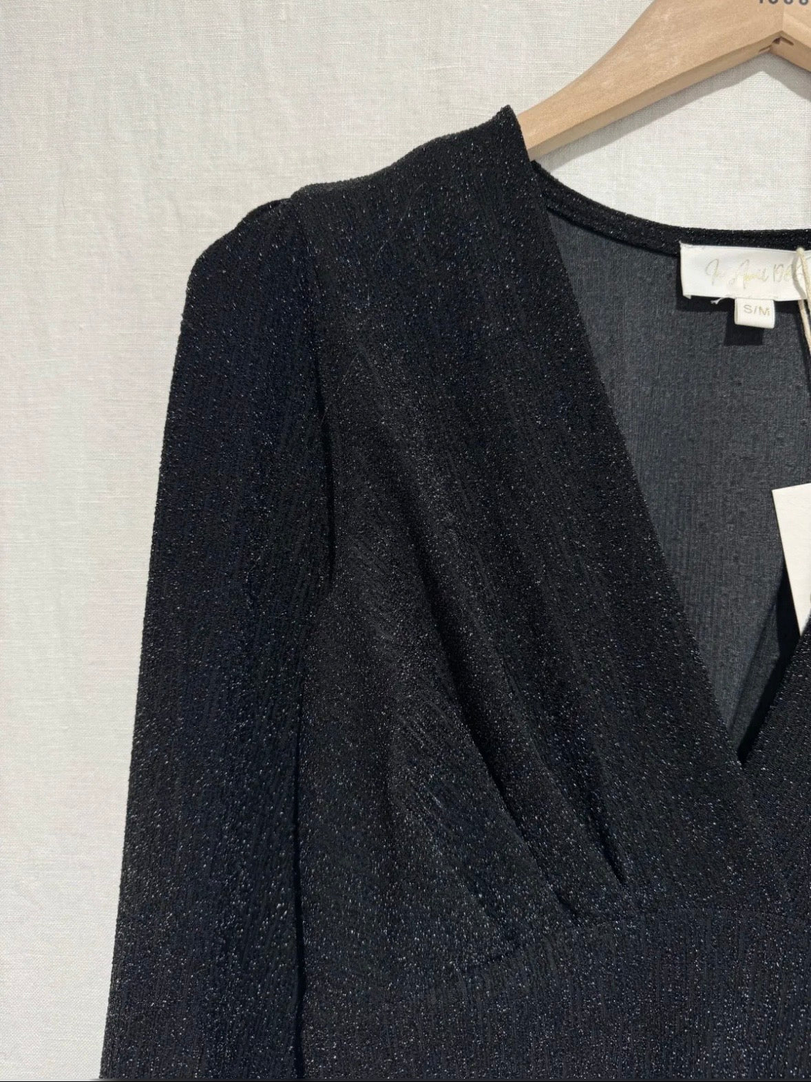 This soft subtle sparkle cross over plunge neck body is perfect for the season.